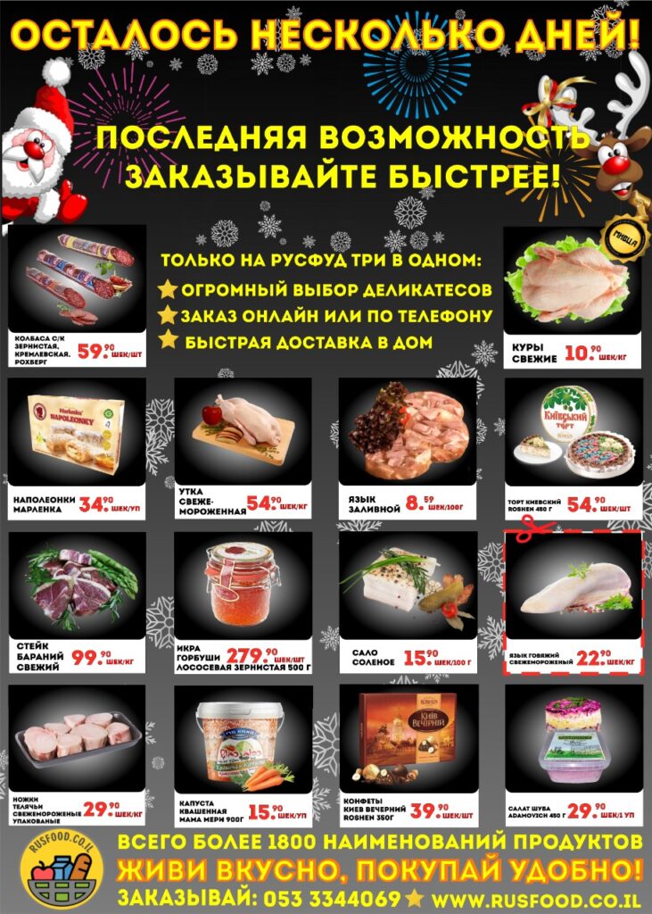 Опубликовано 26/12/202226/12/2022 от Алексей Новогодние предложения! Предлагаем самый широкий выбор деликатесов к новогоднему столу! Вас ждут праздничные скидки. Не упускайте! До Нового года несколько дней! Перейти к покупкам Навигация по записямПредыдущая запись: Уважаемые покупатели!Следующая запись: Раки вареные!