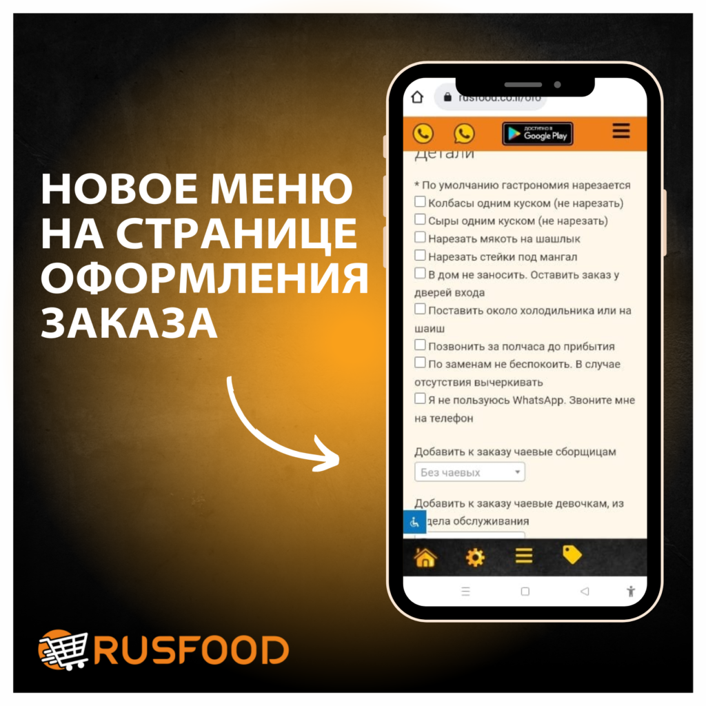 В целях улучшения качества обслуживания, мы ввели новое дигитальное меню на странице оформления заказа. Отмечайте пожалуйста свои пожелания и рекомендации. Желаем приятных покупок!